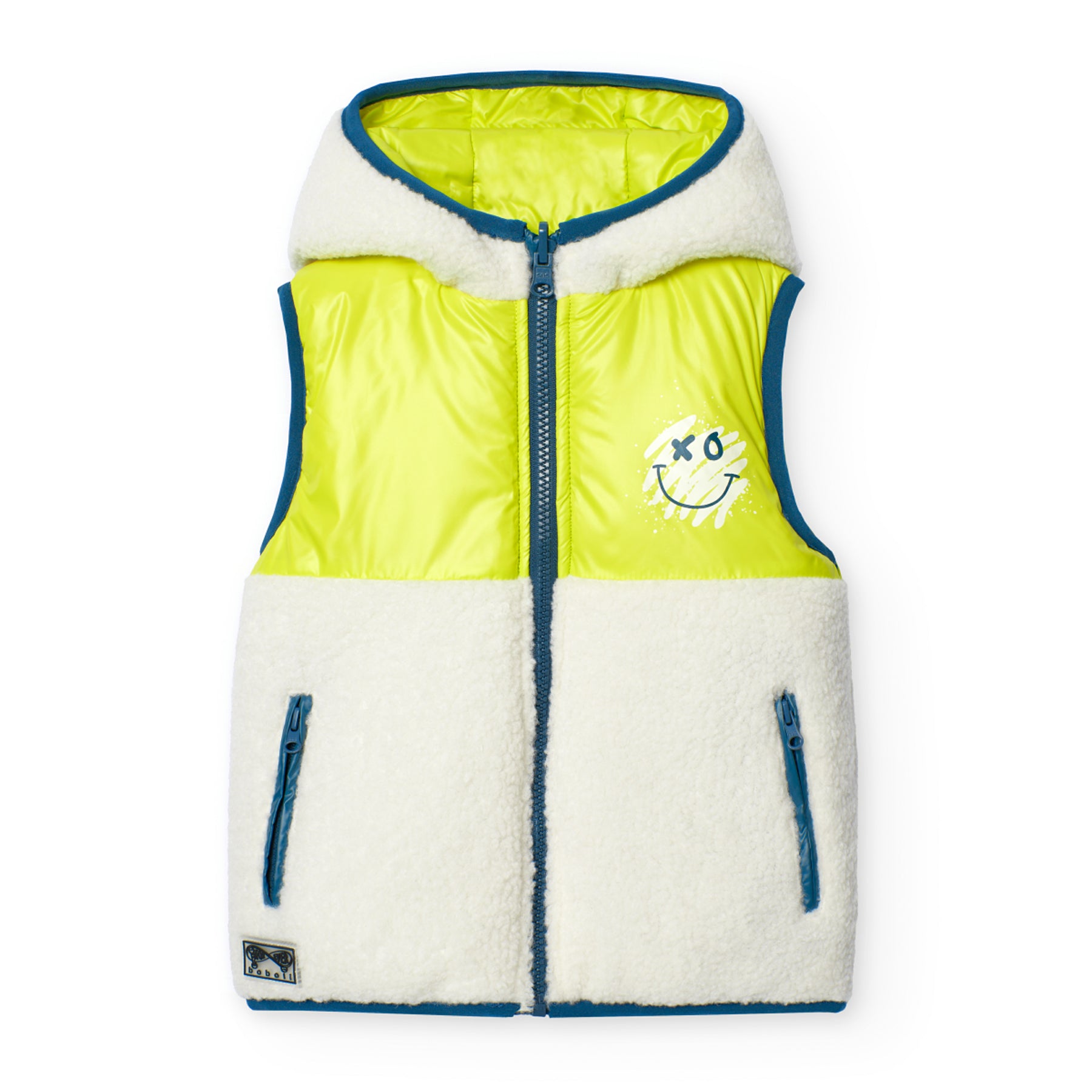 Chaleco azul con blanco reversible con borrega para mini niño y niño jr