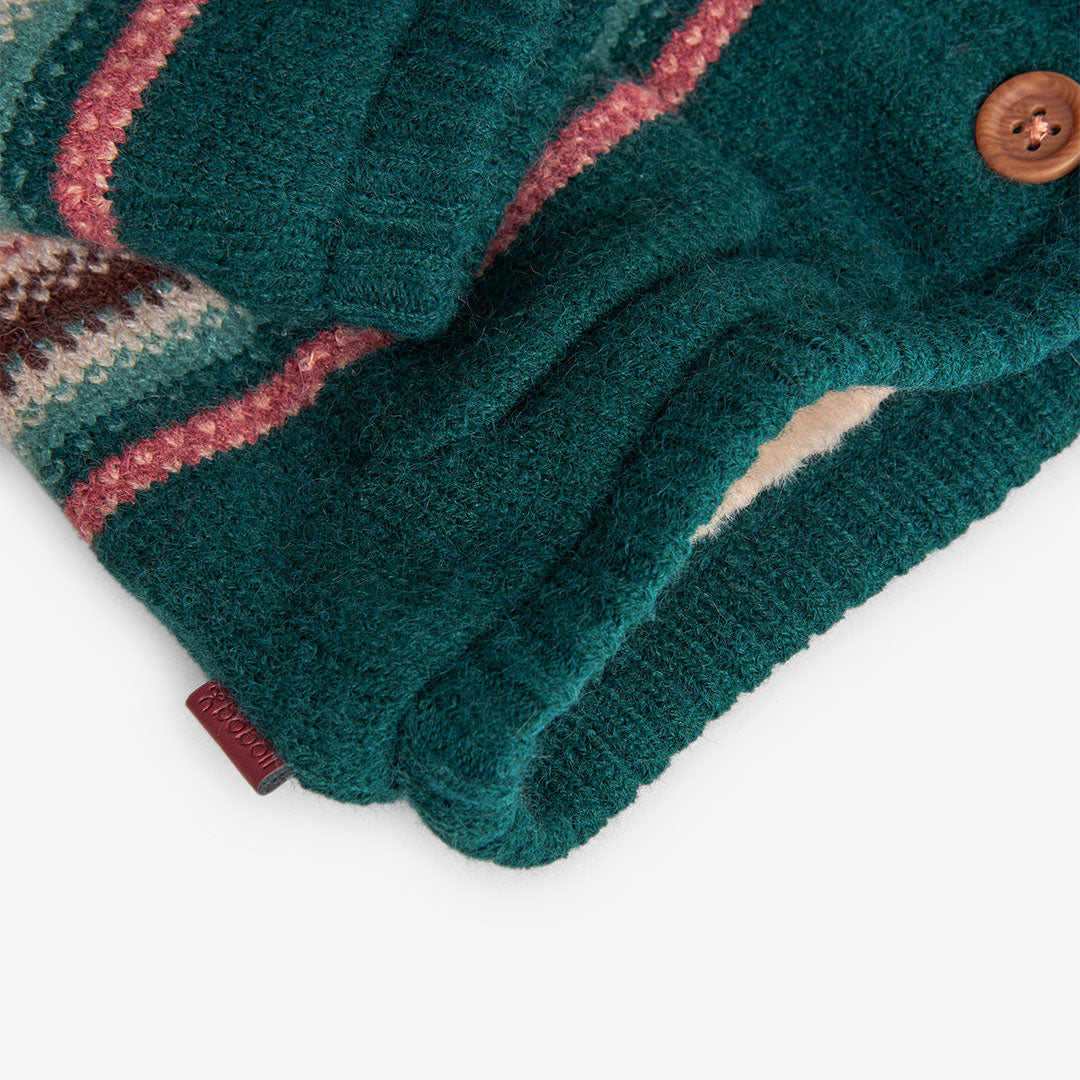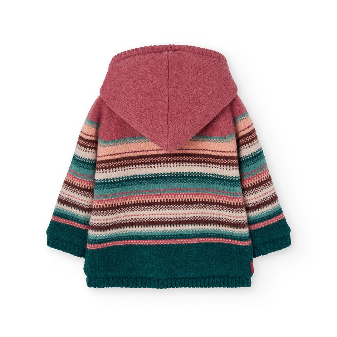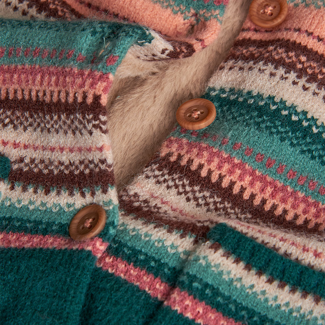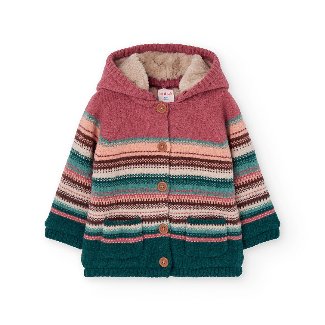 Chamarra tricot multicolor con borrega y capucha desmontable