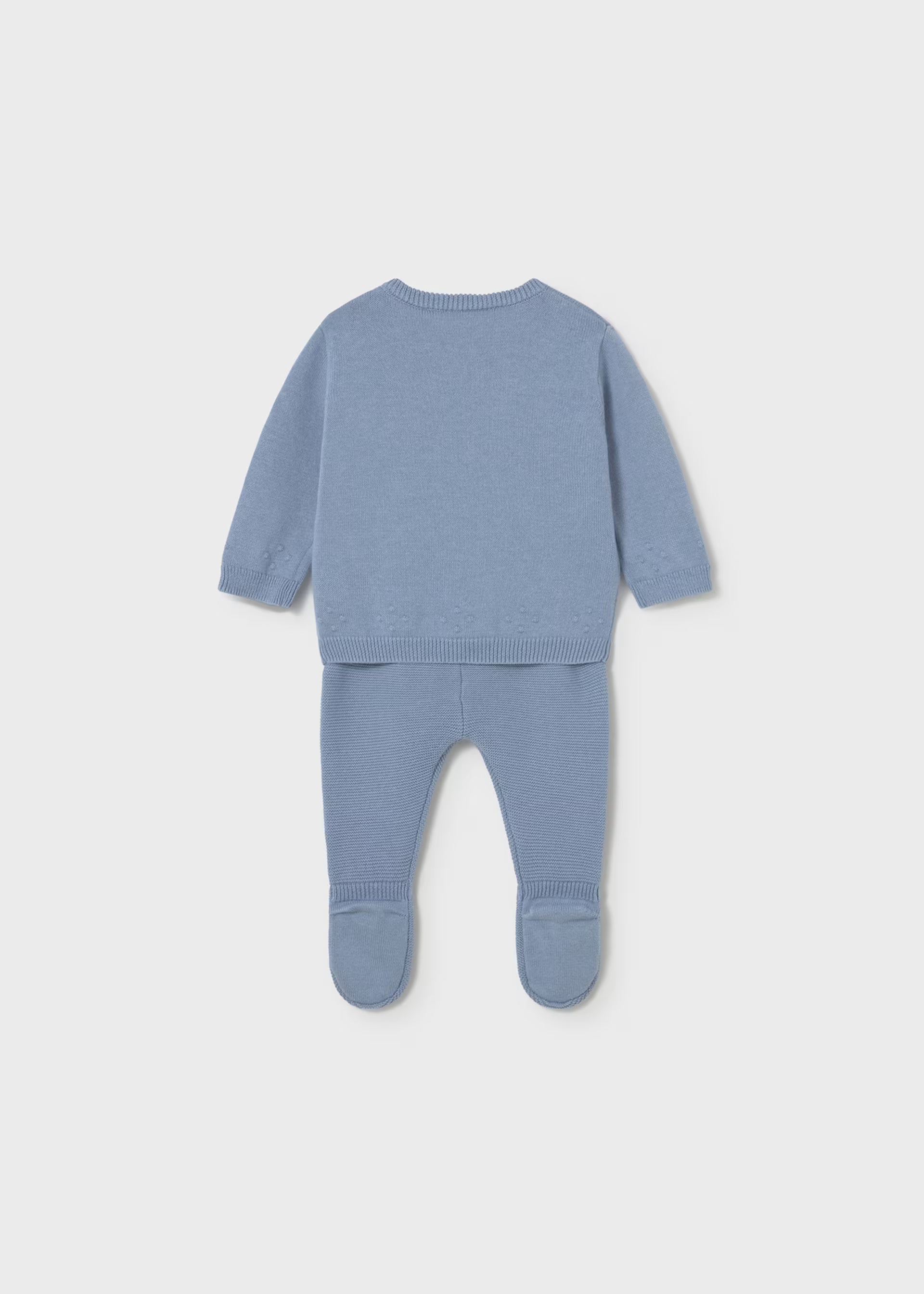 Conjunto pantalón y suéter tricot azul recién nacido