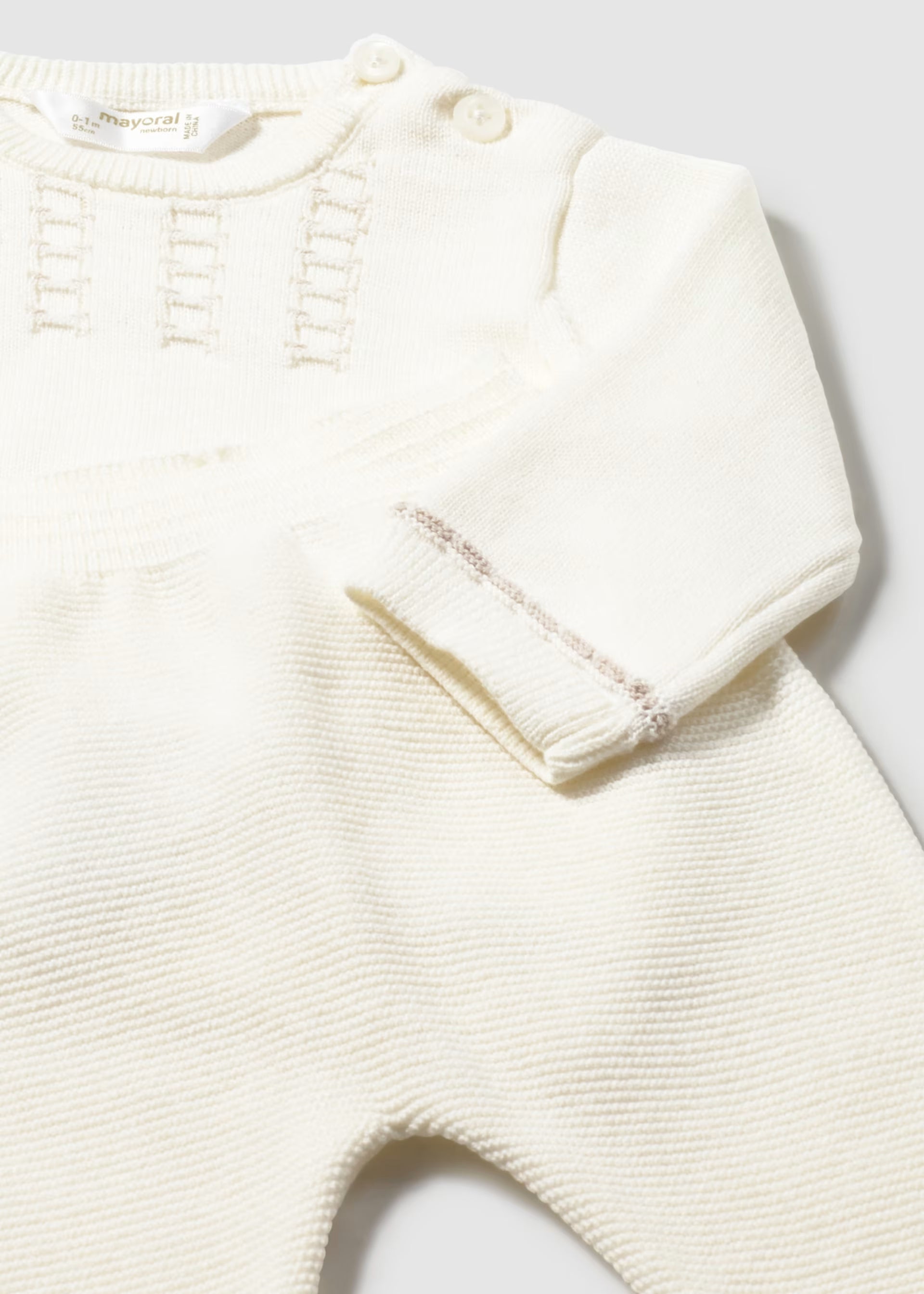 Conjunto pantalón y suéter tricot blanco cerámica recién nacido